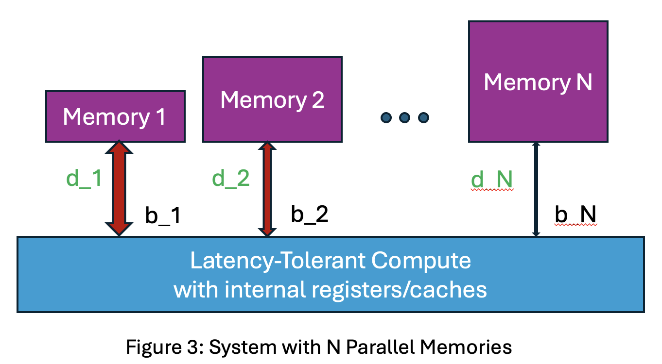 - Let each memory provide bandwidth b_i TB/s in parallel for total bandwidth B = b_1 + … + b_N.